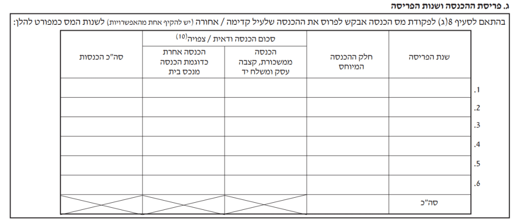במידה ומבצעים פריסה קדימה יש לרשום את את ההכנסה שפורסים מחולקת במס' השנים אותם נרצה לפרוס.