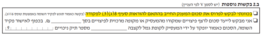 בסעיף ג – יש לציין האם מבקשים לבצע פריסה קדימה או אחורה ויש לציין את תקופת הפריסה המבוקשות.