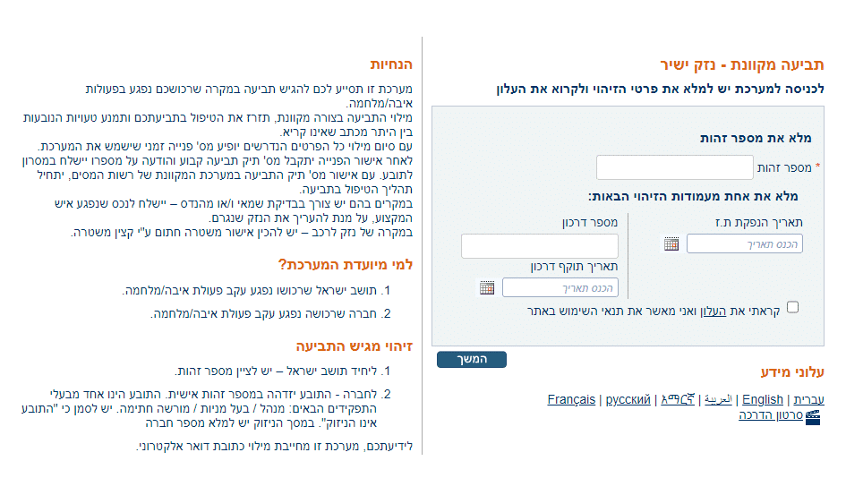 - יש לפרט את פרטי הנזק ואת פרטי הניזוקים